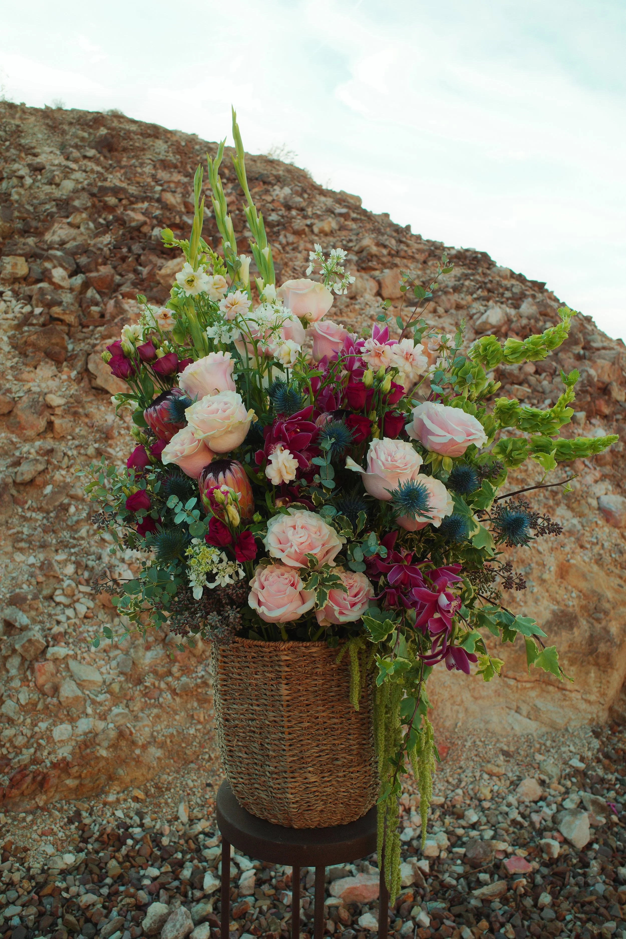 Extra large floral arrangement designed for statement installations, ceremony focal points, or elevated reception displays. Created with premium blooms and seasonal foliage for a full, refined composition. Each arrangement is custom designed in collaboration with you to complement the space, occasion, and overall aesthetic. Starting at $500, with final pricing determined by design scope and floral selection.